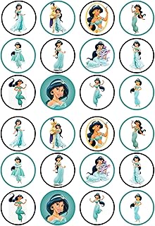 24 x vorgeschnittene Kuchendekorationen auf Backoblaten für Cupcakes mit Motiv „Prinzess Jasmin und Prinz Aladdin“, essbare Dekoration zum Aufstellen, 24 PRECUT