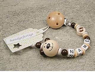 kleinerStorch Baby SCHNULLERKETTE mit Namen - Schnullerhalter mit Wunschnamen - Mädchen Jungen Motiv Bär in Natur, braun