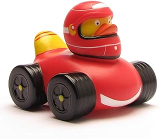 DUCKSHOP I Badeente Rennfahrer I Quietscheente I L: 7,5 cm - inkl. Badeenten-Schlüsselanhänger im Set