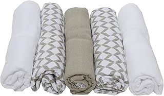 Hochwertige Baby Mullwindeln Spucktücher 70 x 70cm mit verstärktem Rand von Family-Kollektion I 5 x Baumwolle Mulltücher Ökotex Standard I Baumwollwindeln Stoffwindeln Set (Beige/Salatgrün/Grün)