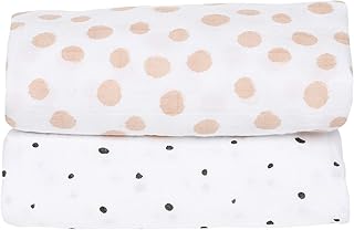 Motherhood Einschlagtücher PREMIUM vorgewaschen, große Mullwindeln, 2-er Set, Öko-Tex Standard, 100% naturreine Baumwolle, 85x110 cm, Kleckse apricot
