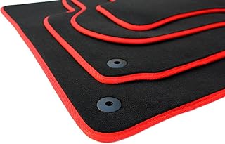 kfzpremiumteile24 Fußmatten/Velours Automatten Premium Qualität Stoffmatten 4-teilig schwarz/rot Druckknopf rund