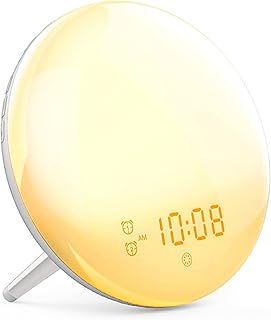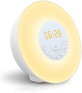 Wake Up Licht Wecker, Lichtwecker Sonnenaufgang Sonnenuntergang Simulation ,20 Helligkeit, 10 natürlichen Klängen,7 Farben Nachtlicht und FM Radio…