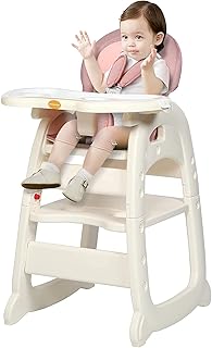 Mitwachsender Hochstuhl Baby, mit 5-Punkt-Sicherheitsgurte, Abnehmbares Tablett, höhenverstellbar, Einfach zu Montierender Hochstühle für Jungen und Mädchen (Rosa-Faltbar)