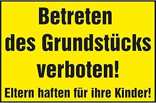 Verbotsschild "Betreten des Grundstücks verboten! Eltern haften für ihre Kinder!" | 300x200 mm | gelb/schwarz | 1 Stück