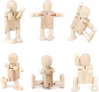Holzroboter, Bastelsets Holzfiguren Roboter (6 Stück) bewegliche Puppe mit beweglichen Armen und Beinen DIY Leere Malerei Holzfigur Handwerkl Spielzeug für Kinder Geschenk für Kinder zum Gestalten