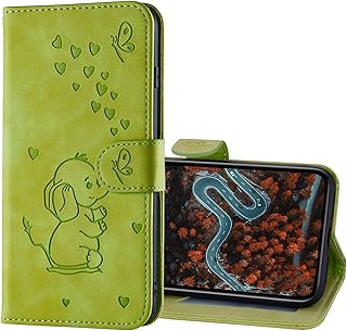 GrandoinChoice Kompatibel mit Samsung Galaxy J4 Plus 2018 Hülle, Handytasche PU Leder Etui Flip Cover Geprägter Niedlich Elefant Muster Book Case Schutzhülle mit [Magnetverschluss] Etui Case (Grün)