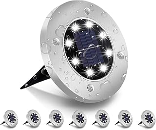 MOSTOP Solar Bodenleuchten,8 LEDs Solarleuchten Solarlampen Gartenleuchten für außen ,IP65 Wasserdicht für Rasen, Patio, Hof,6000K Kaltweiß Edelstahl Solarlicht Garten Licht,8 Stück