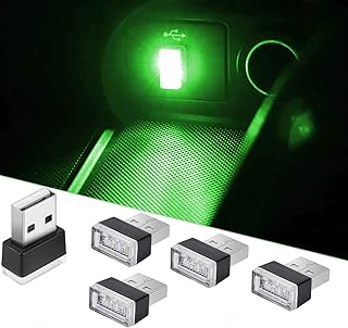 CTRICALVER Auto USB Beleuchtung, Mini USB Licht, Auto Umgebungslicht, Auto Umgebungslicht für Auto Laptop Power Bank (5 Stück grün )